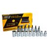 Además, el juego incluye un extensor-enchufe de 15 cm que te permitirá acceder a lugares de difícil alcance con comodidad y facilidad, y para asegurar un manejo suave y eficiente, también viene con un rache 3/8”.